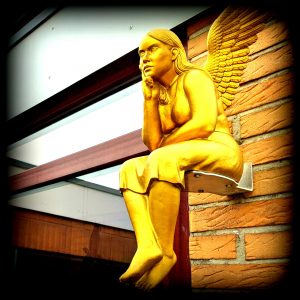 Ach ja der Name des Hauses! Am Haus verteilt “wachen” mehrere Engel über unsere Gäste. Es sind Skulpturen des Künstlers Ottmar Hörl. Der Schöpfer ist der Präsident der Akademie der Bildenden Künste in Nürnberg und hat mit den Engeln und anderen Werken bundesweit Aufsehen erregt. So stammt von ihm auch eine Skulptureninstallation “Ludwig van Beethoven” in einem Moskauer Park. Auch Martin Luther wurde von ihm auf seine Art verewigt.
